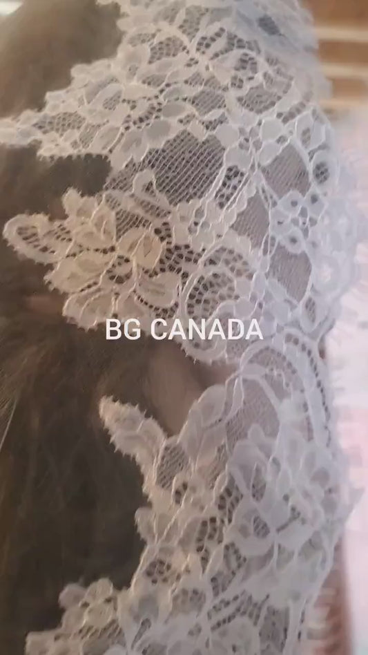 Spanish Mantilla Veil with Eyelash Lace Edge Scalloped Bridal Style for Cathedral Weddings