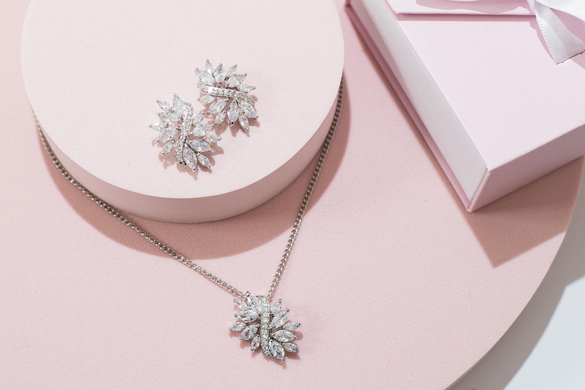 This earrings and necklace set will make the perfect gift for your bridesmaids/ bridal party or maid of honor to thank them for being part of your special day.